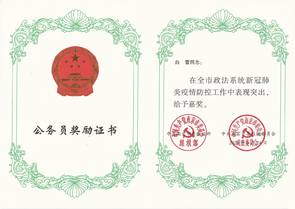 近日,浦口区检察院白雪同志在全市政法系统新冠肺炎疫情防控工作中表现突出,获得嘉奖。
