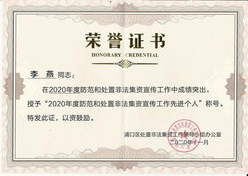 2020年11月20日下午,党组成员、副检察长王天渊带领浦口区检察院20名干警职工参加了浦口区金融监管局、区级机关工委组织的 “倡导理性投资 防范非法金融”宣教活动。活动中区金融监管局局长李先义通报了2020年全区防范和处置非法集资工作开展情况;机关党员干部代表宣读“倡导理性投资 防范非法金融”承诺书;浦口区委政法委常务副书记刘汉勤宣读了2020年防范和处置非法集资宣传工作先进集体和个人名单,其中浦口区检察院李燕同志被评为区防范和处置非法集资宣传工作先进个人并上台领奖。最后参会领导和区级机关干部代表上台在“倡导理性投资 防范非法金融”签名。