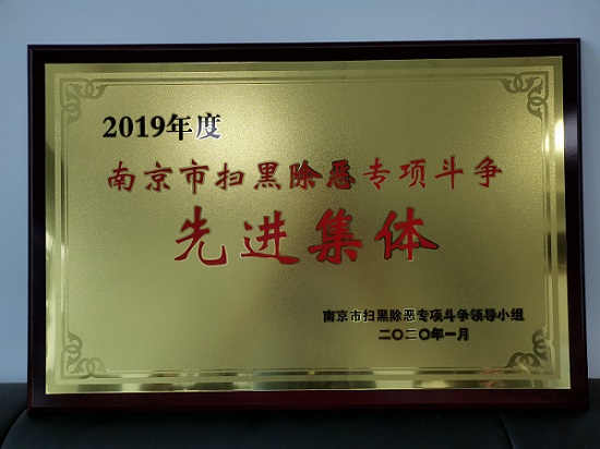 近日,浦口区检察院被南京市扫黑除恶专项斗争领导小组授予“2019年度南京市扫黑除恶专项斗争先进集体”荣誉称号。