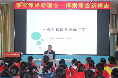 为进一步提高青少年校园防欺凌意识和自我保护能力,正确引导未成年人树立懂法、守法的法治观念,推动形成人人遵纪、和谐团结的校园氛围,近期,浦口区检察院第一检察部的检察干警围绕“一起对校园欺凌说‘不’”主题,为南京市浦口区新世纪小学六年级的学生们授课。