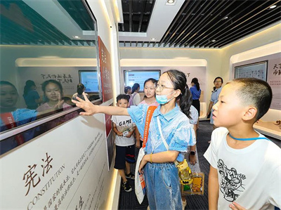 随后,同学们来到浦口区法治教育基地进行参观,专题普法区中内容丰富的动漫视频和互动答题吸引了同学们驻足观看、互动体验。