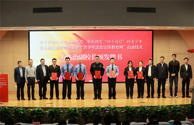 启动仪式上,浦口区检察院党组副书记、副检察长闵宏权,副检察长郑煜作为新晋法治副校长代表,上台接受了聘书。