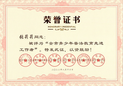 近日,南京市关工委、市委政法委、市人民法院、市人民检察院、市教育局、市公安局、市司法局、共青团市委、市法学会联合召开南京市青少年普法教育总结会暨第五届“关爱明天、普法先行”青少年法治宣传教育活动启动仪式,会议表彰了一批青少年普法教育先进集体和先进个人。浦口区检察院关工委张莉莉同志被授予“全市青少年普法教育先进工作者”称号。