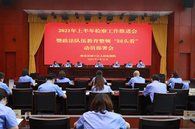 7月22日上午,浦口区检察院召开2021年上半年检察工作推进会暨政法队伍教育整顿“回头看”动员部署会。全面总结分析上半年工作情况,研究部署下半年工作任务,并对教育整顿“回头看”进行动员部署。