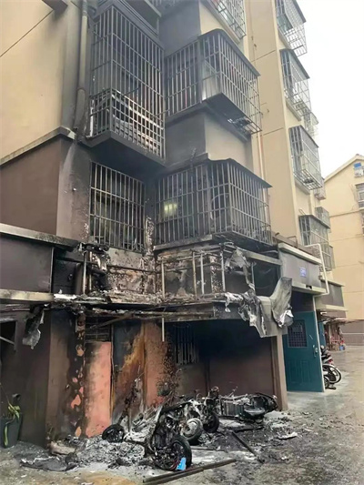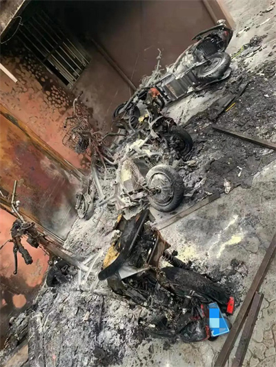 所幸火情已被及时扑灭,现场有多辆电动车烧毁,邻近墙壁有大面积烟熏痕迹。检察官协同相关部门随即对事故原因及小区存在的消防安全问题进行彻底排查,发现起火原因是电动车电池老化引起自燃,同时还发现小区存在电动车违规停放以及“飞线充电”等消防安全隐患,当即要求立即整改。